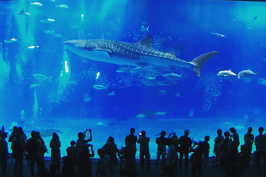 巨大ジンベエザメに、イルカショー。沖縄に来たら一度は訪れたい沖縄観光の定番!その感動的な光景が一望できる巨大アクリルパネルは、高さ8.2m、幅22.5m、厚さ60cmで、水族館の展示窓として世界一とギネスブックに認定されました。
