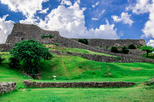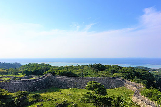 15世紀中頃、座喜味城から移った護佐丸が完成させた。1853年に訪れた米のペリー一行も称賛した築城技術は芸術的。城壁からは東に太平洋、西に東シナ海が眺望できる。